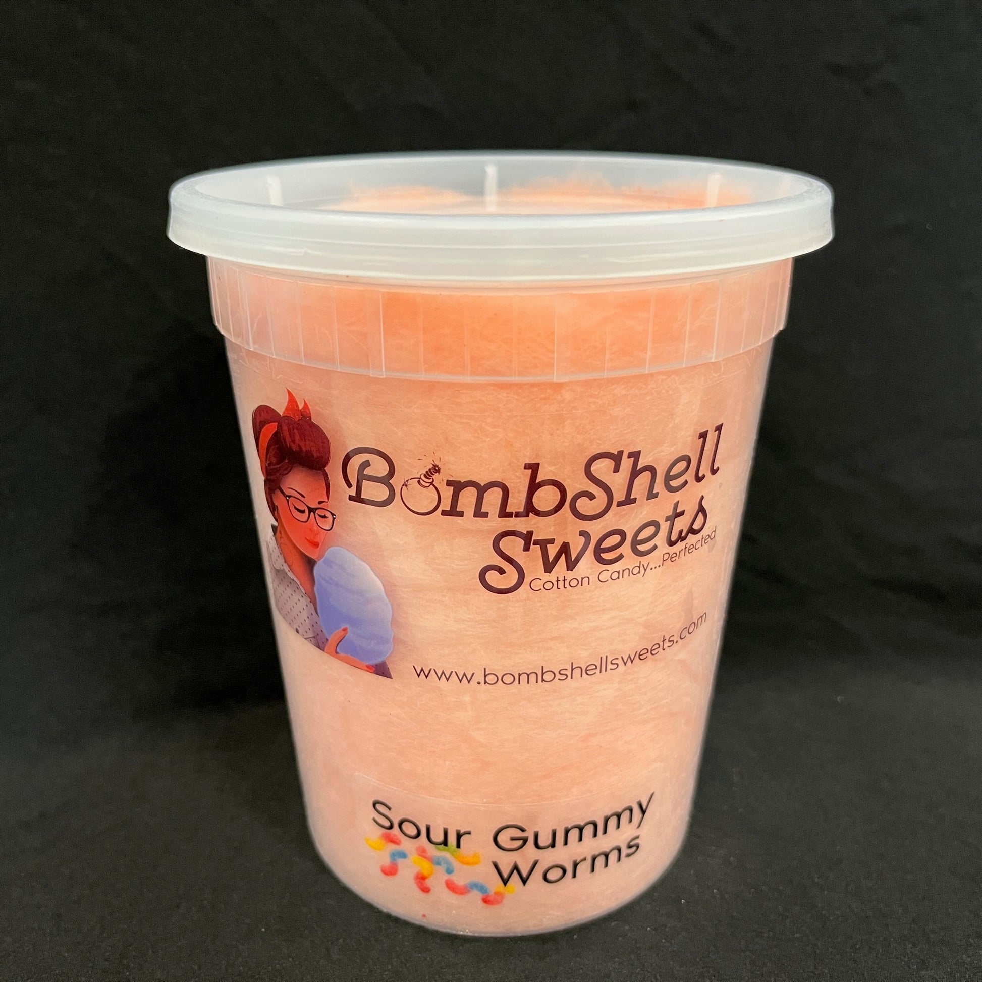 Sour Gummy Worms Cotton Candy combines the soft, airy texture of classic cotton candy with the bold, tangy flavor of sour gummy worms. The sweetness of the spun sugar is balanced by a tart, fruity punch that mimics the taste of the gummy candy, creating a fun mix of sour and sweet.