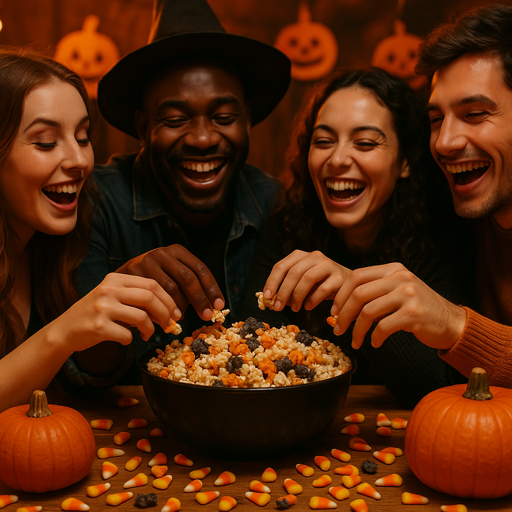 A Halloween spin on classic kettle corn, Spooky Kettle Craze features festive cream, orange, and black popcorn. Lightly sweet with that signature kettle crunch, it’s playful, colorful, and perfect for seasonal displays or party-ready snack packs.